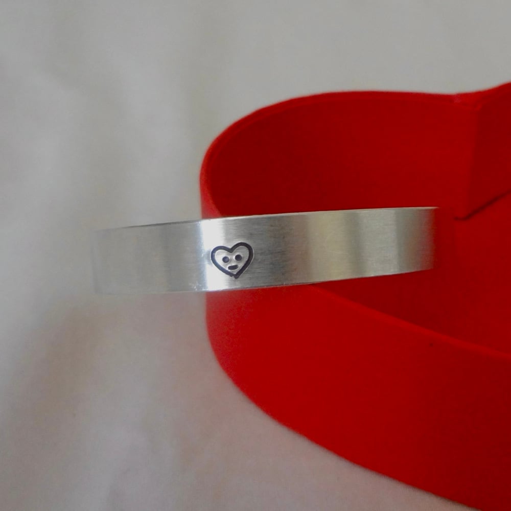our lil loop but with 1/8" more thickness non-tarnish & adjustable runs larger than the skinny bracelet so best worn as a forearm cuff